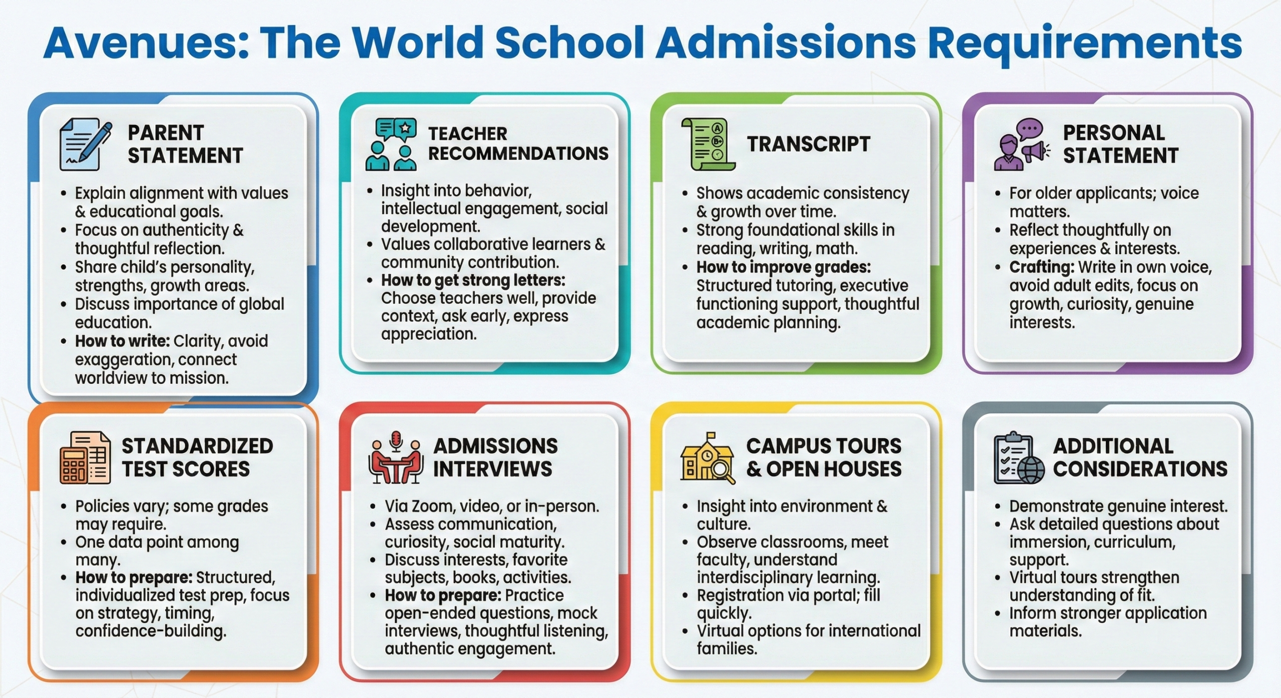 Older applicants may be asked to submit a personal statement. This is where voice matters. Avenues appreciates students who reflect thoughtfully on their experiences and interests.