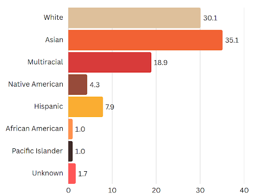 According to data from Niche, the student body at Bowman School is notably diverse. Asian students make up the largest group at 35.1%, with White students close behind at 30.1%. You’ll also find 18.9% of students identifying as multiracial, 7.9% as Hispanic, and 4.3% as Native American. African American and Pacific Islander students each represent 1.0%, and 1.7% fall under the “Unknown” category, probably too busy being awesome to check a box. It all adds up to a beautifully mixed community where different cultures, voices, and perspectives are not only welcomed but celebrated.