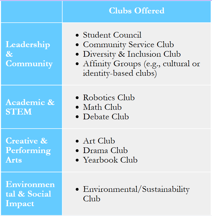 These organizations provide students with opportunities to develop new skills, pursue their passions, and contribute positively to the school community.